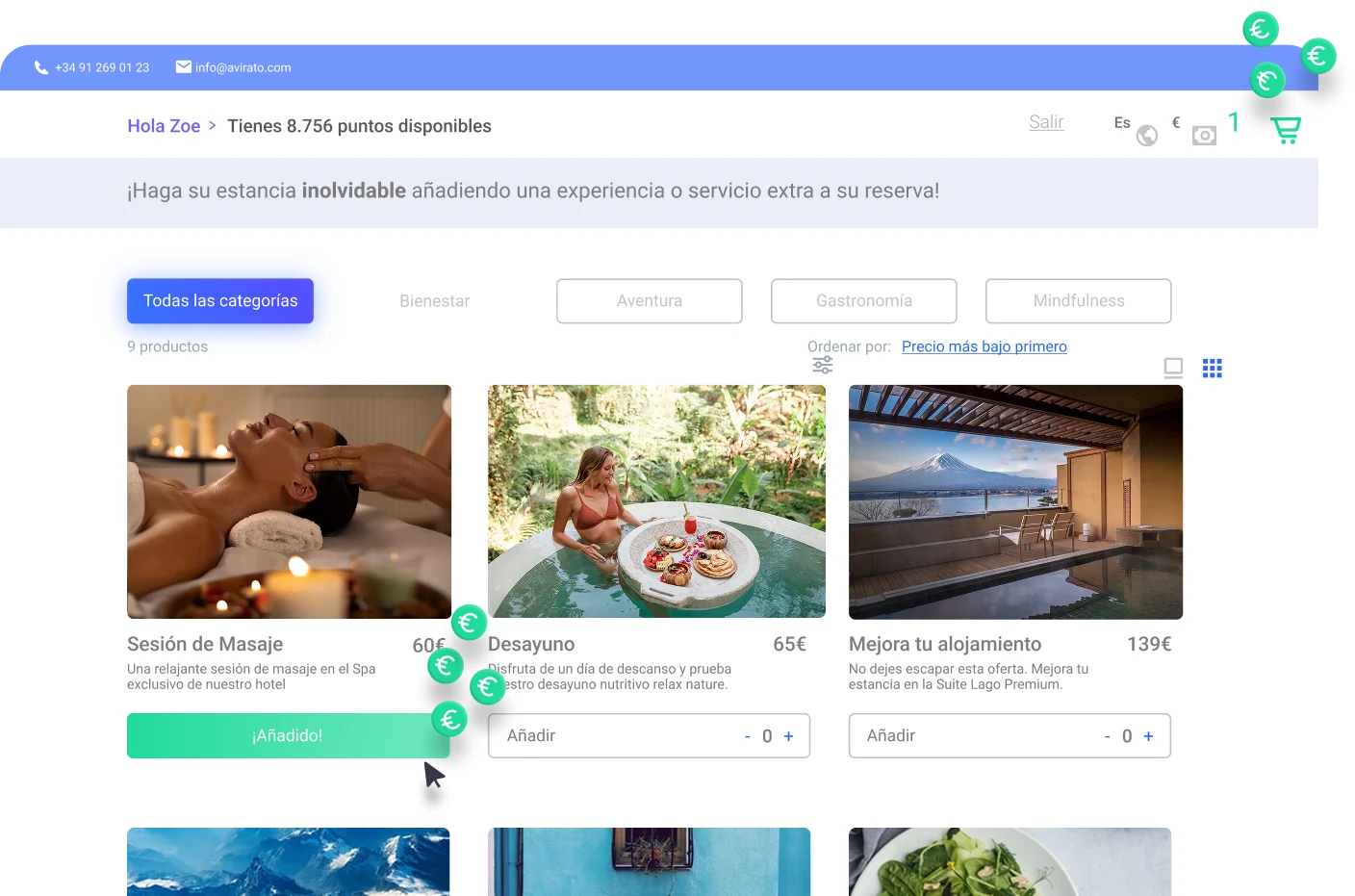 productos, experiencias y upgrades